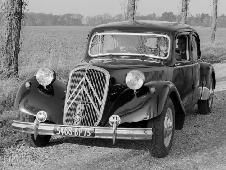 Dans la mémoire collective, la Traction Avant Citroën présente toujours le même visage : une calandre étroite aux gigantesques chevrons, cernée par deux phares inquisiteurs et des ailes aux volutes ostensiblement séparés du reste de la carrosserie, lui conférant — et pour cause — un parfum d’avant-guerre aussitôt démenti par une fiche technique présentant, pour l’époque, les hardiesses que l’on sait. Pourtant, comme Paul le relate par ailleurs, la première Citroën à roues antérieures motrices a comporté un grand nombre de variantes, dont les différences concernaient la longueur, la largeur et bien sûr la mécanique, donnant naissance à des voitures aux vocations très disparates. Ainsi, la « 22 » à huit cylindres ayant rejoint la patrie mélancolique des autos mort-nées, c’est à la « 15 » qu’a échu, par la suite, le rôle de porte-drapeau d’une gamme aussi mythique que tentaculaire. Interrompue par la guerre, sa trajectoire n’aura réellement scintillé qu’à partir de la fin des années 1940. Nous n’avons pas résisté au plaisir de vous narrer son histoire…