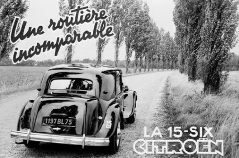 Son histoire commence au mois de juin 1938, alors même que d’insistants bruits de bottes se font déjà entendre à l’Est. Privée de véritable haut de gamme depuis la disparition des ultimes « 15 » NH trois ans auparavant, la gamme du Quai de Javel renoue alors avec une vieille tradition. Aux côtés des « 7 » et des « 11 » à quatre cylindres, apparaît donc celle que le catalogue Citroën présente comme la 15 Six. Le nombre 15, censé correspondre à la puissance administrative de l’auto, est d’ailleurs inexact ; en réalité, la nouvelle venue est une 16 chevaux fiscaux ! Elle les doit, bien entendu, aux capacités de son moteur. Ce dernier n’est pas totalement inédit ; il reprend en effet l’alésage et la course (78 x 100) du groupe « 11 ». L’ajout de deux cylindres supplémentaires aboutit à une cylindrée de 2 867 cm3, pour une puissance de 76 chevaux réels, obtenus au régime modéré de 3 800 tours/minute. Par rapport à la « 11 », le progrès est très net : avec trente chevaux de plus, les performances changent résolument de registre. La familiale pour père tranquille se mue en une redoutable dévoreuse de kilomètres dont les qualités routières sont intactes ; de surcroît, la puissance est transmise au sol avec une efficacité très supérieure à celle de modèles sensiblement plus onéreux.