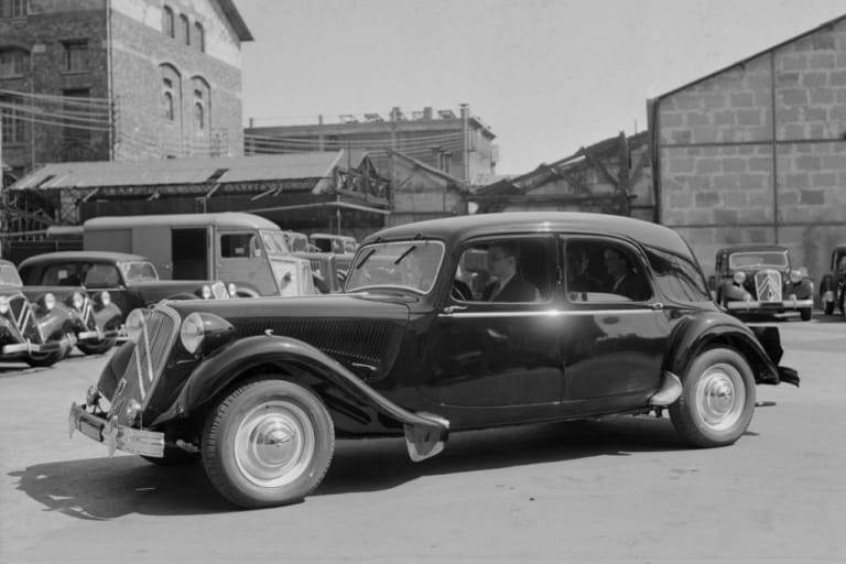 À l’issue des hostilités, la priorité n’est évidemment pas au prestige ou à la quête de performances. La fabrication des Traction reprend de façon très progressive ; l’industrie automobile — ou plutôt ce qu’il en reste — subit de sévères restrictions. La pénurie de matières premières engendre des cadences de production très faibles et il faut attendre le mois de février 1946 pour que la « 15 » sorte de nouveau des ateliers Citroën. C’est là que, véritablement, son histoire bascule dans la mythologie, bien aidée par son omniprésence à l’écran — pas un film noir sans une Traction ! — tout comme dans la rubrique des faits divers. Le gang des Traction Avant défraie la chronique de l’après-guerre tandis que, dans la cour d’honneur du palais de l’Élysée, la IVème République, au fil de ses 24 gouvernements successifs, illustre ses innombrables et médiocres péripéties par de longs cortèges de Citroën noires…