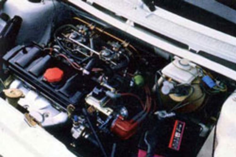 Car, en ce temps-là, s’est développé une sorte de sous-segment de marché, situé juste au-dessous des GTI et apparentées, et constitué de citadines présentées comme « dynamiques », dotées de moteurs plus puissants que la moyenne et, le plus souvent, décorées de façon suggestive – mais nettement moins onéreuses que les Peugeot 205 GTi, Renault Supercinq GT Turbo ou Fiat Uno Turbo i.e., sans même parler de la Golf, qui évolue désormais dans une autre catégorie. Dans cette antichambre servant de prélude à la véritable conduite sportive, on trouve plusieurs voitures destinées, pour l’essentiel, à des poseurs désireux de se démarquer de la masse, mais peu d’authentiques sportives. C’est le territoire des 205 XS, des Ford Fiesta XR2, des Supercinq TS ou des VW Polo GT – des modèles dont le ramage n’égale pas forcément le plumage, notamment lorsque l’on examine leurs liaisons au sol…Tel n’est pas le cas de l’AX qui, tout en succédant aux plus sportives des Visa, reprend sans le dire la philosophie de feue la Talbot Samba Rallye, disparue deux ans auparavant et qui, elle aussi, avait été développée en vue d’une homologation en compétition. Et les ressemblances entre les deux voitures ne s’arrêtent pas là : dépouillée à l’extrême à l’instar de son aînée, l’AX Sport mise tout sur les qualités de son châssis et, bien entendu, sur un moteur dont les caractéristiques, là encore, rappellent étrangement celles de la défunte Talbot !