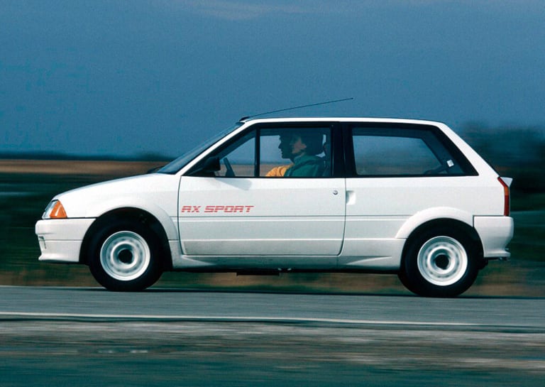 Les voitures intégralement nouvelles ne pullulent guère dans les salons et c’est peu dire que l’AX était attendue avec impatience, à la fois par la presse spécialisée, les disciples de la marque et, bien entendu, un réseau de concessionnaires assoiffés de renouveau et qui avaient de plus en plus de mal à vendre des Visa à une clientèle avant tout séduite par les toutes fraîches 205 et Supercinq. D’une légèreté inouïe, même pour l’époque, dotée de moteurs renouvelés, économique et performante, l’AX n’allait pas tarder à étoffer sa gamme et, contrairement à la Visa Chrono, apparue quatre ans après le lancement du modèle, sa première déclinaison sportive fut commercialisée peu de temps après le lancement des versions courantes. Dévoilée dès le mois d’octobre 1986, la Sport rejoint de la sorte le catalogue Citroën en mars suivant, pour une première série de 5000 voitures permettant l’homologation en groupe N, selon le règlement de la FIA à l’époque. Ainsi, avant même l’indispensable carrosserie à cinq portes – qui ne sera disponible que pour l’année-modèle 1988 –, avant même les versions à moteur Diesel, la direction commerciale de Citroën choisit de dynamiser d’emblée la nouvelle gamme avec une variante survitaminée, mais dont le typage est toutefois très éloigné de celui de ses nombreuses rivales potentielles…