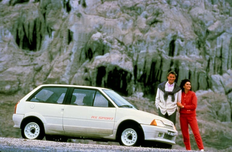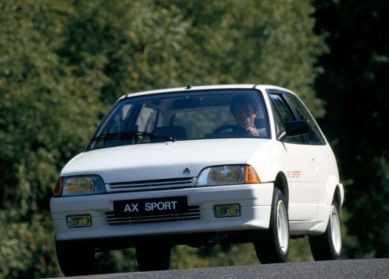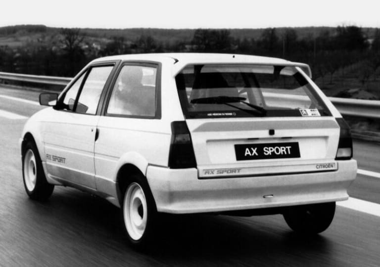 Par rapport à Peugeot, Simca ou Renault, Citroën n’a fait irruption que tardivement dans la catégorie des petites sportives. Lancées en 1982, les Visa Chrono puis GT ont marqué les premières incursions de l’ex-Quai de Javel dans un segment de marché qui, jusqu’alors, ne semblait guère compatible avec l’ADN de la marque. Pour la plupart des gens, les Citroën c’étaient, depuis l’après-guerre, des autos innovantes, originales, confortables, tenant redoutablement bien la route, souvent révolutionnaires, mais dont la conduite s’avérait a priori plus cérébrale qu’émouvante. Préjugé ? Sans doute, du moins si l’on en croit les conclusions d’André Costa, essayeur de légende et âme de l’Auto-Journal à sa grande époque, qui n’avait pas hésité, en 1979, à cataloguer la GS X3 parmi les sportives authentiques et qui ne dédaignait pas, en quelques lignes, de livrer le mode d’emploi à suivre pour provoquer de jouissifs survirages au volant d’une CX ! Il n’empêche qu’avec ses peintures de guerre, ses élargisseurs d’ailes et son moteur vibrionnant, la Visa Chrono n’avait vraiment plus rien à voir avec les Citroën de grand-papa et, en dépit d’une carrière particulièrement brève, initia une tradition qui allait perdurer jusqu’à l’orée des années 2010. Présentée pour sa part au Salon de Paris 1986, aux côtés des versions « civiles » de la nouvelle citadine des Chevrons, l’AX Sport ressemblait vraiment beaucoup à une fille spirituelle de la Chrono – même si, comme on s’en doute, beaucoup de choses avaient changé…
