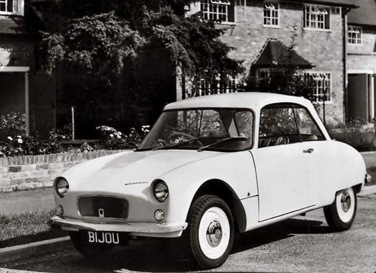 Pour tenter de redresser la barre, les ingénieurs de Slough décident de transformer la vénérable 2CV en un petit roadster plus à même de séduire la clientèle britannique. C’est le designer Peter Kirwan Taylor, qui créera par la suite la Lotus Elite, qui s’y colle, et en 1959, à Earl’s Court, est présenté ce petit Bijou. Le châssis et la mécanique proviennent de la 2CV bien entendu, mais la carrosserie est faite en polyester. Sa ligne fait d’elle une mini Citroën DS, un peu pataude mais plutôt séduisante.
