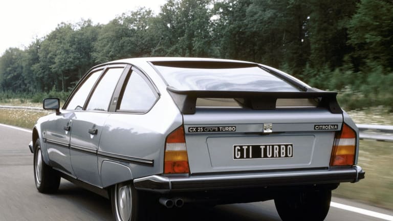 Des années durant, Xavier Karcher, qui dirige brillamment Citroën après avoir accompli l’essentiel de sa carrière chez Peugeot, l’assure sans sourciller en répondant à des sollicitations de plus en plus insistantes : il n’y aura jamais de CX turbo essence, la marque préférant mettre l’accent sur le 2,5 litres turbo Diesel qui, brièvement, conférera à la voiture le titre de berline la plus rapide du monde dans sa catégorie… Mais personne n’est dupe et, en octobre 1984, la révélation de la CX 25 GTi Turbo ne constitue en aucun cas une surprise, ce qui n’empêche pas les observateurs d’analyser très soigneusement les caractéristiques de l’auto. À présent affublé d’un turbocompresseur Garrett soufflant à 0,7 bar, le vaillant 2,5 litres exhale 168 ch à 5000 tours/minute, le couple atteignant pour sa part la valeur de 294 Nm à 3250 tours – des valeurs qui progressent respectivement de 22 et 40 % par rapport à la GTi atmosphérique. Sur le papier, les progrès ne sont pas niables, ce que confirment d’ailleurs des chronos en sensible amélioration, même s’ils demeurent en retrait des meilleures réalisations du moment (on songe à la R25 précitée mais aussi à la Lancia Thema turbo i.e., à la Saab 9000 ou à l’Audi 200). De fait, lorsque l’on dresse la liste de ses rivales potentielles, on constate qu’à l’exception de la Peugeot 505 Turbo injection, la CX doit affronter des modèles apparus une dizaine d’années après sa naissance. Et, en dépit de sa suprématie dans le domaine des qualités routières, la sénescence de la voiture se fait chaque jour plus criante, que l’on s’intéresse à son design, à la qualité de sa finition ou à des détails fonctionnels de moins en moins acceptables, tels que l’absence incompréhensible d’un hayon que la silhouette de la voiture suggère pourtant et accepterait sans dommage esthétique. Dans ces conditions, la GTi Turbo apparaît autant comme un porte-drapeau vecteur d’image que comme un moyen commode de rajeunir l’ensemble d’une gamme dont le restylage tardif, intervenu pour l’année-modèle 1986, ne convaincra pas grand-monde avec, pour l’essentiel, la greffe de boucliers lourdingues réalisés en plastique et un mobilier de bord qui, quoique intégralement renouvelé, réussira l’exploit de dégrader l’ergonomie générale de la voiture, sans que la finition ne bénéficie de progrès significatifs.