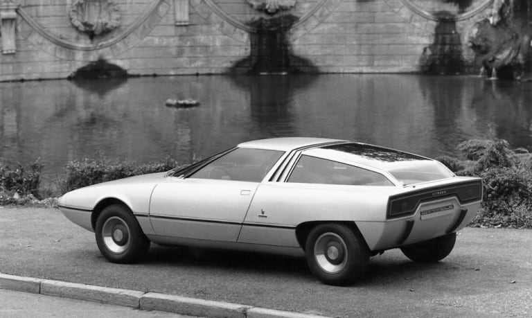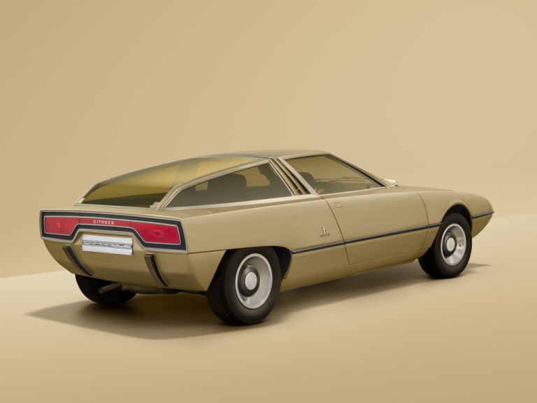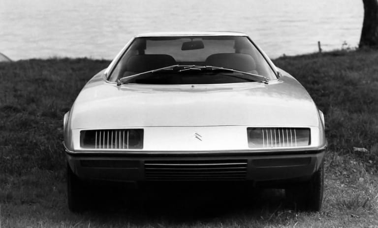 C’était un temps où Citroën y croyait encore, un temps où l’aventure Comotor n’avait pas encore ruiné l’entreprise, un temps où la SM portait encore tous les espoirs de la marque, notamment aux État-Unis, un temps où une fusion avec Fiat était encore d’actualité. Propriétaire de Maserati, flirtant avec la turinoise, Citroën sentait le parfum de l’Italie et le carrossier Bertone y vit un probable client. Voilà pourquoi il confia à son dessinateur fétiche, Marcello Gandini, la réalisation d’un coupé moderne reposant sur la base et la mécanique de la récente GS. Dénommée Camargue, cette étude de style fit la sensation du salon de Genève 1972. À l’occasion d’une rétrospective Gandini au Salon Rétromobile 2020, le public parisien pourra se délecter de ses lignes trapézoïdales qui ne sont pas sans rappeler le Tesla Cybertruck présenté en 2019.