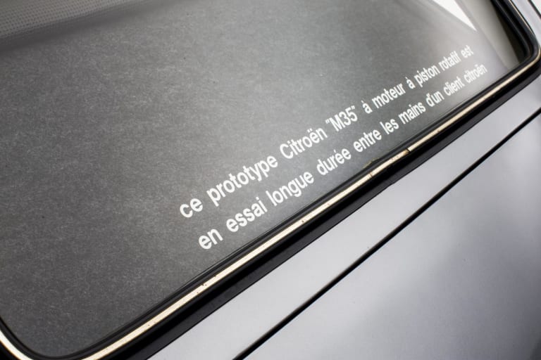 Ainsi, le profane n’y verra qu’un coupé Ami 8 hâtivement redessiné ; erreur : non seulement le bicylindre à évidemment disparu mais, par surcroît, la suspension hydropneumatique préfigure assez précisément celle de la GS encore à naître et, par-dessus le marché, quasiment aucune pièce de tôlerie ni aucun élément de vitrage ne sont communs aux deux modèles (même le pare-brise est spécifique, contrairement aux apparences !). Les possesseurs d’Ami 8 retrouveront davantage leurs repères à l’intérieur, le mobilier de bord étant à peu près similaire ; on remarque un volant inédit, un compte-tours greffé à la va-vite et des témoins supplémentaires chargés de surveiller la pression d’huile, la température d’eau et la pression hydraulique. Les sièges avant sont néanmoins exclusifs et témoignent du positionnement erratique du modèle, émanant d’une automobile populaire mais ne dédaignant pas quelques clins d’œil incongrus au grand tourisme. Il faut dire que la M35 n’est pas particulièrement abordable : la technique d’avant-garde et la fabrication en toute petite série ont un coût ; l’auto est ainsi tarifée 14 000 francs au début de 1970 — c’est-à-dire le prix d’une D Spécial… C’est peut-être pour cela qu’en dépit du succès initial de l’opération de communication, les 500 unités prévues au départ ne seront pas atteintes, loin s’en faut ; la carrière de la M35 s’arrête en 1971, Citroën entreprenant alors de racheter les voitures à leurs propriétaires afin de les détruire (quatre ans plus tard, les GS Birotor connaîtront le même destin). En 2016, dans la revue Chevronnés, notre cher et regretté Thierry Astier parlait d’environ 80 survivantes, dont seulement une dizaine en état de rouler. En plus de toutes ses spécificités, la cote de l’auto s’en ressent et, selon La Vie de l’Auto, il faut dorénavant prévoir une enveloppe de 25 000 euros pour se procurer une M35 en bel état. Le plus difficile, en l’espèce, sera d’en trouver une à vendre…