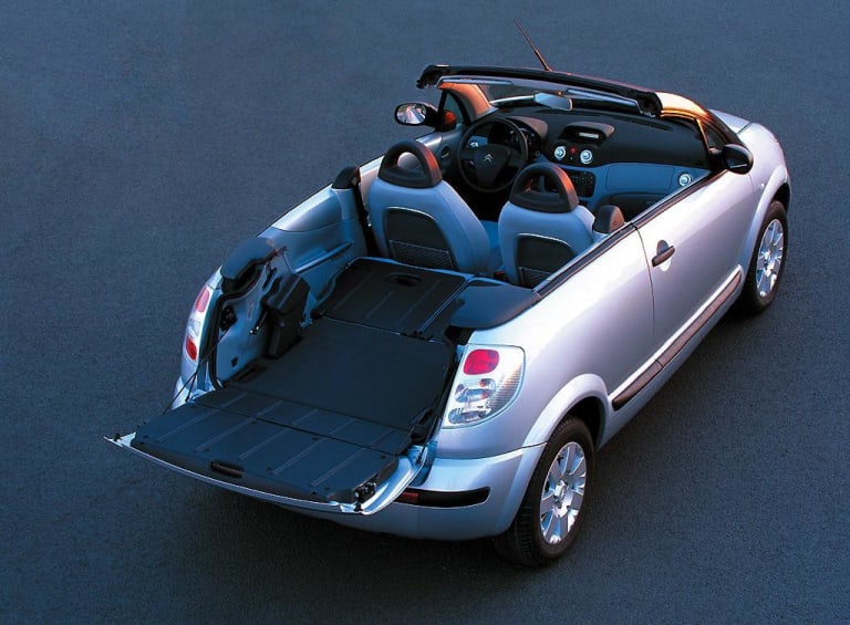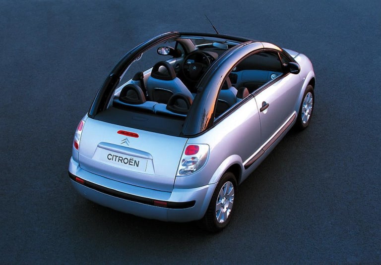 Il est intéressant de noter que la C3 Pluriel et la Peugeot 206 CC ont connu des destinées parallèles et à peu près contemporaines (présentée sous la forme d’un prototype à Genève en 1998, la Sochalienne a été commercialisée à l’automne 2000). Avec la 206, Peugeot s’inspire du revival initié par la Mercedes-Benz SLK et va susciter la création d’un nouveau segment de marché : celui des coupés-cabriolets généralistes, qui vont littéralement pulluler dans les années à venir. Or, Citroën a délibérément choisi une approche disruptive et, comme au bon vieux temps, prend le risque de la marginalité en proposant un concept bien plus audacieux que celui de la 206. Dans la C3 Pluriel, pas de toit en dur escamotable (qui, en l’espèce, constitue pourtant la solution la plus pratique et que, contrairement à un hardtop, l’on emmène partout avec soi, sans craindre ni les aléas climatiques ni le vandalisme). Fondamentalement, l’auto se présente sous la forme d’un coach à deux portes équipé d’un toit en toile escamotable électriquement. En se cantonnant à ce stade, il ne s’agirait donc que d’une banale berline découvrable – sauf que Citroën va nettement plus loin, puisque l’utilisateur peut aussi démonter les arches de toit, obtenant ainsi un authentique cabriolet. Et ce n’est pas tout, car en abaissant la ridelle et en rabattant les sièges arrière, la voiture peut aussi se muer en une sorte de pick-up miniature !