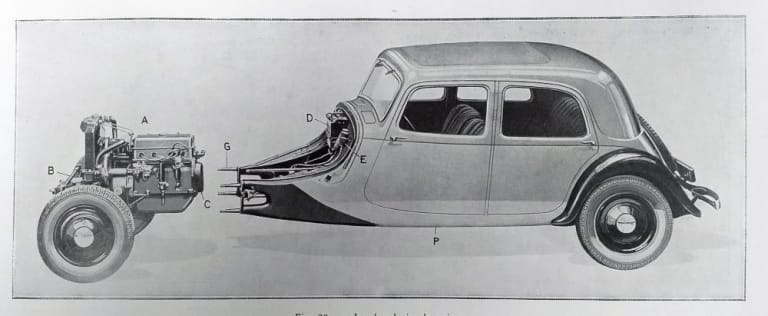 Pour le second opus, André Citroën a retenu la leçon. Malgré la mévente des Rosalies, les effets sensibles de la crise de 1929 et la fâcheuse tendance de Monsieur André à dépenser son argent dans tous les casinos de France et de Navarre, la décision est prise : lancer une voiture révolutionnaire. André Lefebvre, ingénieur génial venu de chez Gabriel Voisin, s’y colle pour développer une auto qui sort du lot. Au programme, “traction avant” (un pléonasme qu’on aimera longtemps chez Citroën) permettant d’abaisser le centre de gravité, mais aussi une carrosserie monocoque signée Flaminio Bertoni en même temps futuriste et bien dans son époque (une gageure), permettant, elle, une meilleure rigidité. Côté suspension, on n’est pas encore à l’hydraulique mais on se passe des lames et ressorts à l’ancienne pour des barres de torsion et des roues semi-indépendantes.