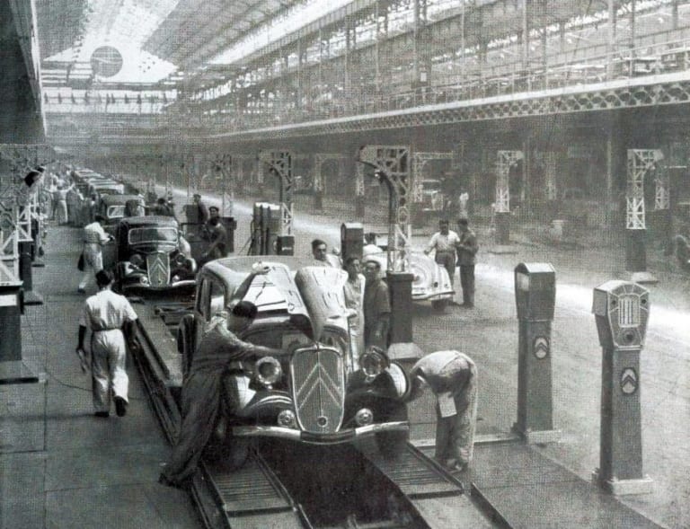 Revenons au début des années 1930… André Citroën décide alors de lancer la Rosalie, une voiture très classique destinée à être le coeur de la gamme aux chevrons. L’idée est assez simple : produire en grande série (pour abaisser les coûts) une voiture “moyenne” en tous points à même de séduire la clientèle “moyenne” que cible Citroën. Pas de solution miracle, ni d’évolution technologique particulière : juste une bonne voiture pour la bonne personne. Sauf que le déferlement des Rosalies sur le marché ne se fera jamais et que ces dernières s’avéreront un poil timorées. Dont acte.