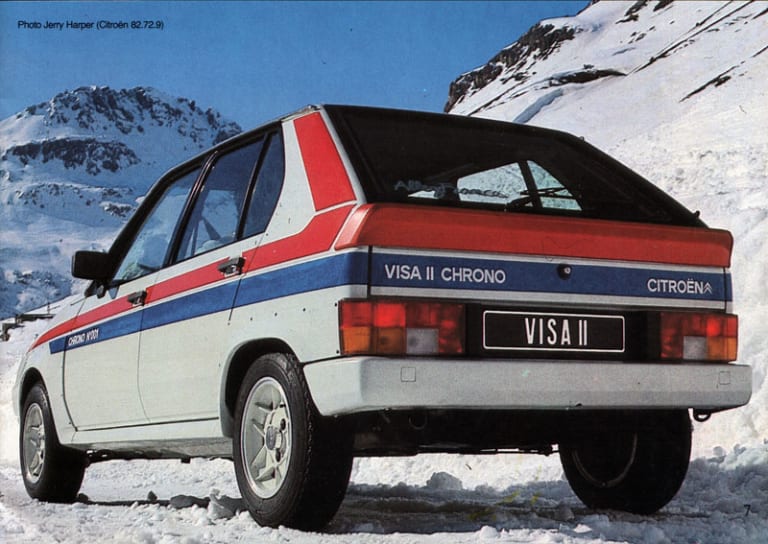 Alors à la tête de Citroën Compétition, l’ancien pilote Guy Verrier manque peut-être de ressources, mais certainement pas d’idées. Dès 1981, il conçoit le Trophée Total Citroën Visa, championnat monotype dans lequel s’aligne la Visa « Groupe 5 », développée sur la base de la Super X et qui, à l’issue d’une sérieuse préparation, atteint déjà 115 chevaux. Sur la même base, s’ensuivra la « Trophée », produite chez Heuliez à 200 exemplaires en vue d’obtenir l’homologation de l’engin en Groupe B (mais parfaitement…). À ce stade cependant, et en dépit de résultats encourageants en course sur lesquels Citroën communique d’ailleurs abondamment dans la presse spécialisée, ces péripéties demeurent largement hors de portée du client lambda. La Chrono va découler de ce constat et devenir, pour l’histoire, la première petite Citroën à vocation sportive de grande diffusion — même si l’on tient compte du fait que l’auto ne sera produite qu’en série limitée et proposée à un tarif relativement élevé lorsque l’on considère son environnement concurrentiel. De fait, à sa sortie en mars 1982, la plus excitante des Visa est affichée à 55 000 francs (soit environ 20 200 € de 2022), versus 42 900 francs pour une Peugeot 104 ZS, 56 800 francs pour une Renault 5 Alpine Turbo (plus puissante de 17 chevaux) ou 58 650 francs pour une Volkswagen Golf GTi 1800. Est-ce la rançon d’une certaine exclusivité ?
