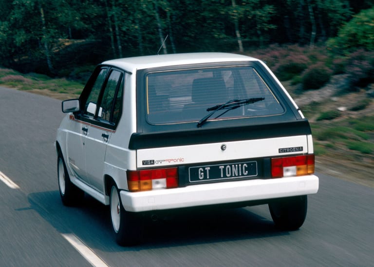 Les années 1980 ont vu s’épanouir une catégorie qui balbutiait encore durant la décennie précédente : celle des petites sportives à traction avant, baptisées « GTi » en référence à son chef de file apparu en 1976 – nous voulons bien entendu parler de la sacro-sainte Golf originelle. Dans la roue de cette dernière, puis de la Renault 5 Alpine, une myriade de concurrentes plus ou moins abouties firent progressivement leur apparition, chaque constructeur généraliste, qu’il soit européen ou japonais, étant alors désireux de croquer une part d’un gâteau aussi rémunérateur en termes de marges bénéficiaires que d’image de marque. Et, de façon très inattendue, cette lame de fond n’épargna pas la plus baroque des citadines de ce temps-là, c’est-à-dire la Citroën Visa, a priori étrangère à toute velléité sportive. Pourtant, si les premières tentatives de dévergondage du modèle ne furent guère concluantes, le laideron de l’ex-quai de Javel allait finir par accoucher d’une réjouissante série de voitures « à conduire » dont la GT fut l’une des premières représentantes…