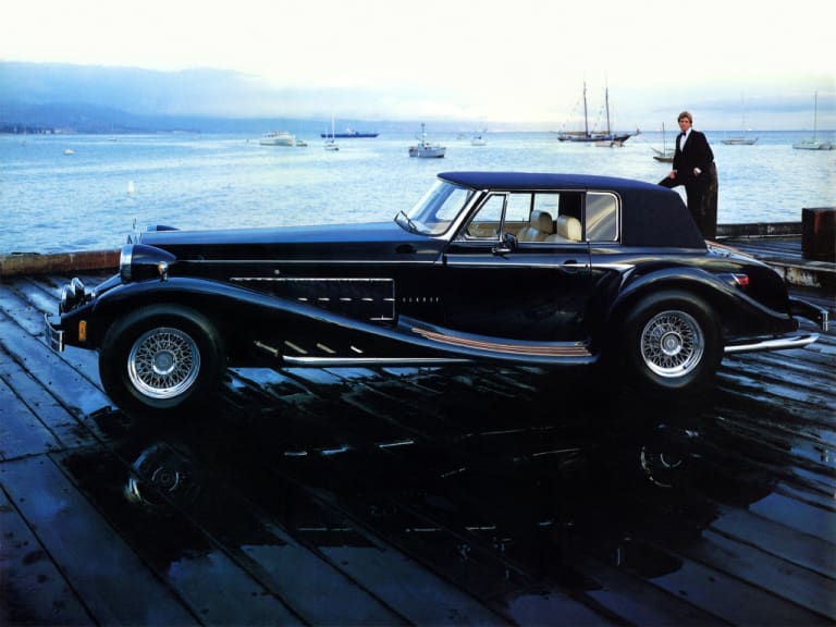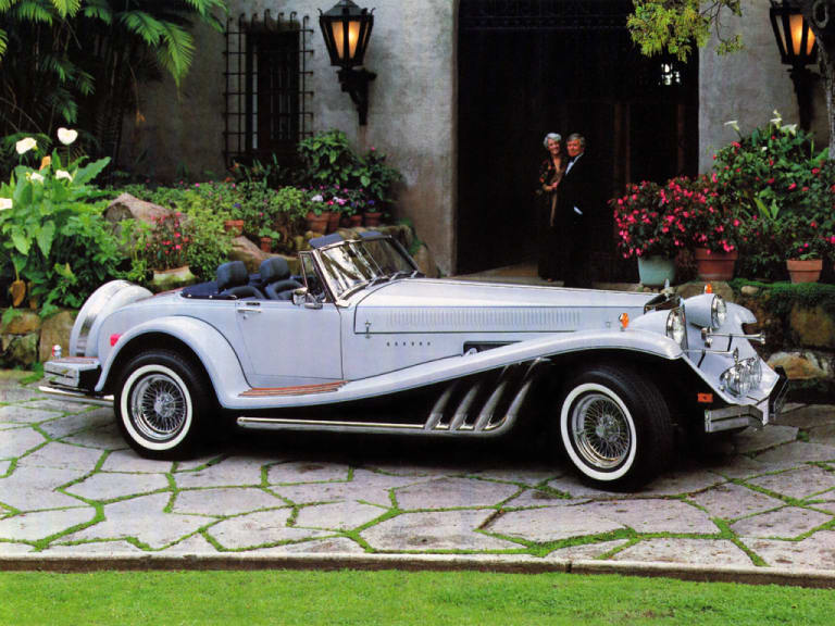 Quand on parle de coupés ou cabriolets délirants singeant les Mercedes d’avant-guerre, on pense tout de suite aux plus célèbres d’entre eux, Excalibur, ou Zimmer. Aux Etats-Unis, dans les années 70 et 80, il existait un réel engouement pour ces véhicules qu’on qualifierait aujourd’hui de « bling bling ». A l’époque, les constructeurs de ce type fleurissaient outre-atlantique.