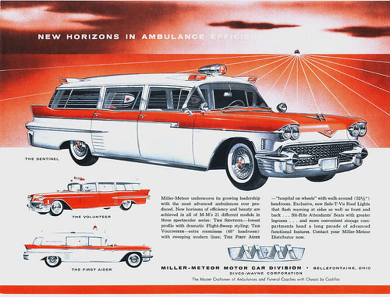 Ecto-1 est en fait une Cadillac, datant de 1959 (et ressemblant assez fortement à l’Eldorado Biarritz, lire aussi : Cadillac Eldorado Biarritz 1959). Le carrossier de l’Ohio Miller-Meteor proposait des versions commerciales sur base Cadillac : la Classic Landau (une version corbillard) et la Futura Limousine, qui servira de base à l’Ecto-1 et qui pouvait être transformée en ambulance.