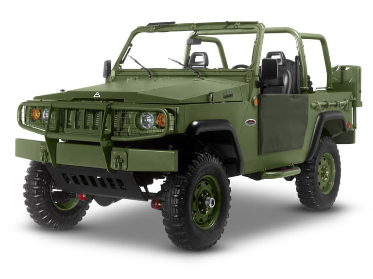 Le EE T1 Osorio qui devait équiper les forces armées saoudiennes… En 1985, l’Engesa EE-12 (version militaire) ou 4 (version civile) entre en production. Transmission intégrale, différentiel à glissement limité, essieux rigides à barres oscillantes longitudinales et transversales et ressorts hélicoïdaux, l’Engesa 4 a beau être rustique dans sa conception, il n’en est pas moins excellent dans ses missions de franchissement. Sa face avant agressive lui donnera rapidement un surnom chez ses utilisateurs : le Rhino. Il est équipé d’un 4 cylindres d’origine GM développant 88 ch en version essence, et 75 ch en version « alcool ». Un diesel Perkins sera testé sans jamais être introduit de série.