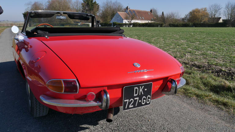Né en 1966, le Spider reçut tout d’abord le nom de Duetto : un nom qui ne durera qu’un an et uniquement en version 1600. C’est en 1967 qu’apparaît cette version 1750 désormais appelée Spider Veloce. Elle possède encore la ligne “os de seiche” (ou coda longa) dessinée par Pininfarina. C’est d’ailleurs Pininfarina qui fabrique cette voiture dans son usine de Grugliasco, aux côtés de sa principale concurrente italienne, la Fiat 124.