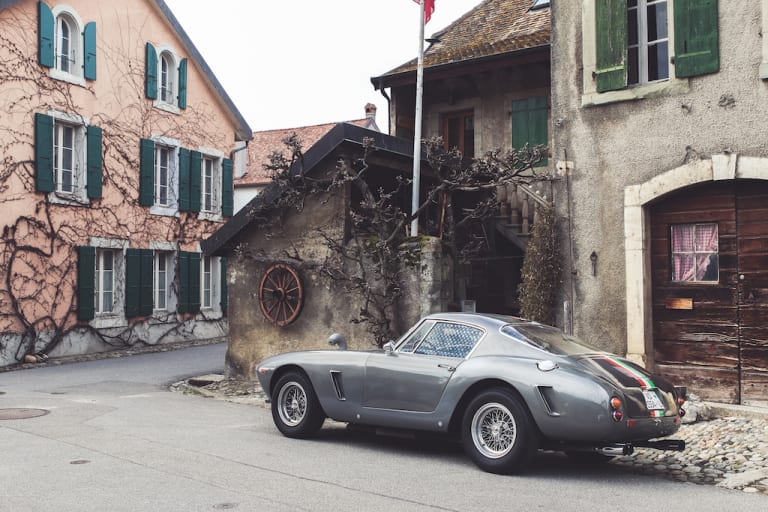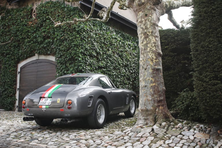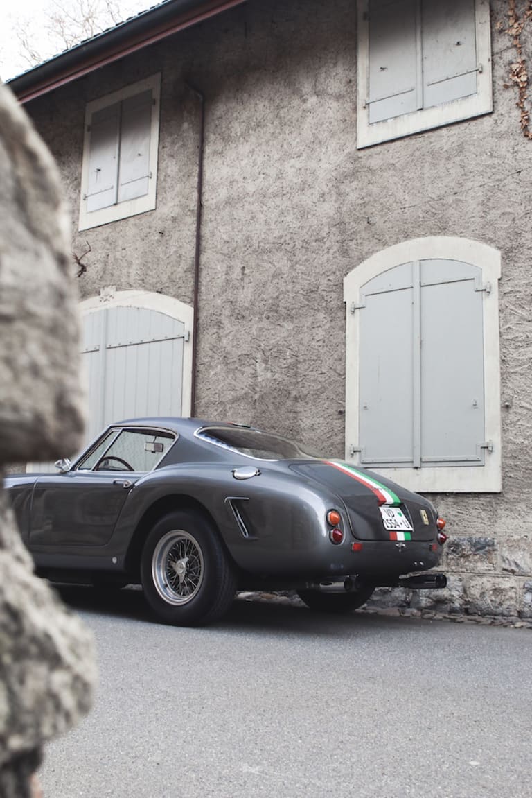 La tôle, faite en principe d’aluminium ou d’acier selon que l’on se trouve en présence d’une version de course ou de route, est littéralement dévorée par les passages de roues qui n’abritent pourtant que des pneumatiques de 15 pouces et 185 millimètres de large ; des dimensions qui feraient probablement sourire un propriétaire de Renault Mégane R.S., du moins jusqu’à ce qu’il se retrouve pétrifié par la stridence du douze-cylindres — mais n’anticipons pas… En quatre ans et environ 160 exemplaires construits, la voiture aura subi de nombreuses mais subtiles modifications, dont la plus visible concerne l’angle des portières, là où, en l’absence de custode — celle-là même qui existait encore sur la Berlinetta Interim, fabriquée à sept unités en 1959 et qui, en quelque sorte, a servi de prototype exploratoire pour la SWB — elles viennent presque effleurer la lisière de la lunette arrière.