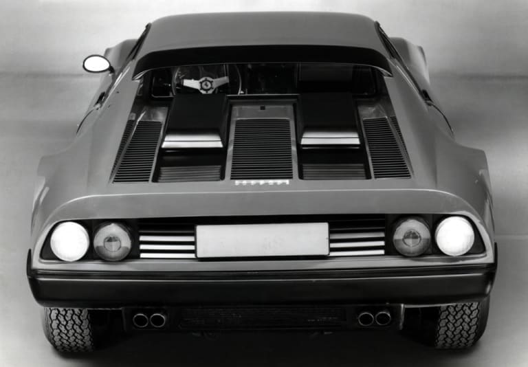 Pourtant, en cette année 68, le projet d’une berlinette à moteur central “Boxer” n’était encore qu’une ébauche. La nouveauté du moment, c’était la Daytona, restant fidèle aux principes du Commandatore du moteur à l’avant. “Les chevaux sont faits pour tirer la charrette, pas pour la pousser” avait-il d’abord dit devant la Lamborghini Miura, preuve de son doute face à cette formule. Pourtant, “il n’y a que les imbéciles qui ne changent pas d’avis” et Enzo était tout sauf un imbécile. Si, jusqu’à présent, il se refusait à utiliser une telle configuration sur une Ferrari, il n’avait pas hésité à le faire avec sa deuxième marque Dino, en hommage à son fils disparu. Ainsi, la Dino 208 GTS possédait-elle un V6 2 litres en position centrale arrière depuis 1967 (c’était une façon aussi de se différencier des Fiat Dino utilisant le même moteur, mais à l’avant).