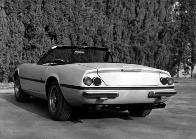 Les carrosseries (mêlant acier et aluminium, puis ensuite tout acier) étaient fabriquées chez Scaglietti. Finalement, à sa sortie au salon de Paris de 1968, elle adoptait un avant particulièrement travaillé et moderne, rompant stylistiquement avec sa devancière : des phares carénés sous plexiglas lançant un mouvement que suivront les marques françaises avec la Citroën SM ou l’Alpine A310 4 cylindres quelques années plus tard.
