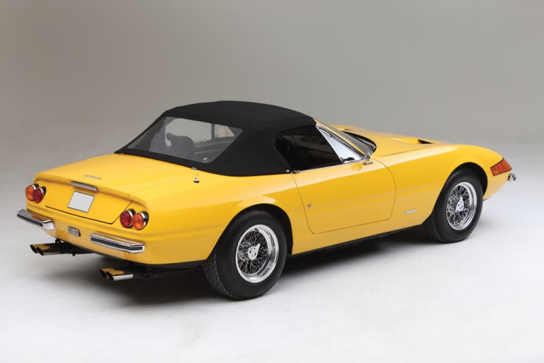 En 1971, il fallut pourtant faire des efforts vis-à-vis des USA : la nouvelle réglementation interdisait aux phares d’être sous verre. Alors que Citroën opta pour l’abandon pur et simple de la verrière sans modification, Ferrari fit un effort plus conséquent en retravaillant les optiques : afin de garder une certaine classe, on préféra se donner du mal, la Daytona récupérant des feux avant rétractables. Chacun aura sa préférence mais avec ces nouveaux feux, la 365 limitait les dégâts. Cette même année (et pour les besoins américains justement), une version Spyder était ajoutée au catalogue, appelé GTS/4.