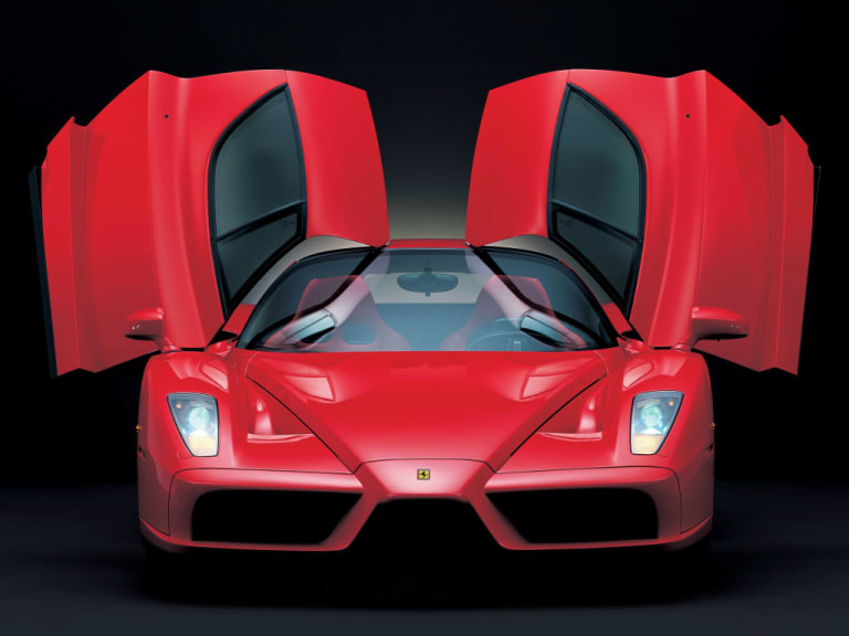 Ferrari applique à sa supercar le principe de la rareté : 399 exemplaires numérotés, et pas un de plus, produits de 2003 à 2005. Pas un de plus ? En fait il existe un 400ème exemplaire, fabriqué spécialement à la demande du boss de Ferrari, Luca di Montezemolo, et vendu aux enchères par Sotheby’s au profit des œuvres du Vatican. Elle sera vendue 950 000 euros (alors que l’Enzo vaut 675 000 euros au catalogue).