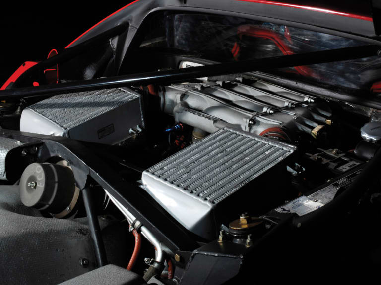 Substantiellement, il y a trois choses à retenir de la F40 : premièrement, elle est rapide ; deuxièmement, elle est rapide ; troisièmement, elle est rapide. Elle n’a pas été conçue pour autre chose que la vitesse, et avant tout sur la route, même si l’inventaire de son typage renvoie sans équivoque aux relents de la course et si bon nombre d’exemplaires ont limé le bitume des circuits. Évidemment, il est possible de procéder à l’examen de sa fiche technique sous différents angles et, si l’on rapproche certaines valeurs de modèles actuels, la démonstration a indéniablement vieilli mais demeure impressionnante, surtout en gardant à l’esprit les trois décennies écoulées depuis la conception de l’auto. Issu de la 288 GTO, le V8 à quatre soupapes par cylindre de 2 936 cm3, gavé par deux turbocompresseurs IHI, délivre 478 chevaux à 7000 tours/minute et un couple de 577 Nm à 4 000 tours. Des chiffres qui, en 1987, plaçaient la voiture au sommet de la hiérarchie mais qui sont à présent largement surpassés par un roturier modèle d’entrée de gamme tel que la F8 Tributo qui, de surcroît, combine des performances stratosphériques avec une facilité de conduite et un confort de marche sans rapport avec ceux de son aînée, résolument ancrée dans la radicalité et en laquelle il serait vain de chercher les indices de la moindre complaisance pour vos vertèbres comme pour vos tympans.