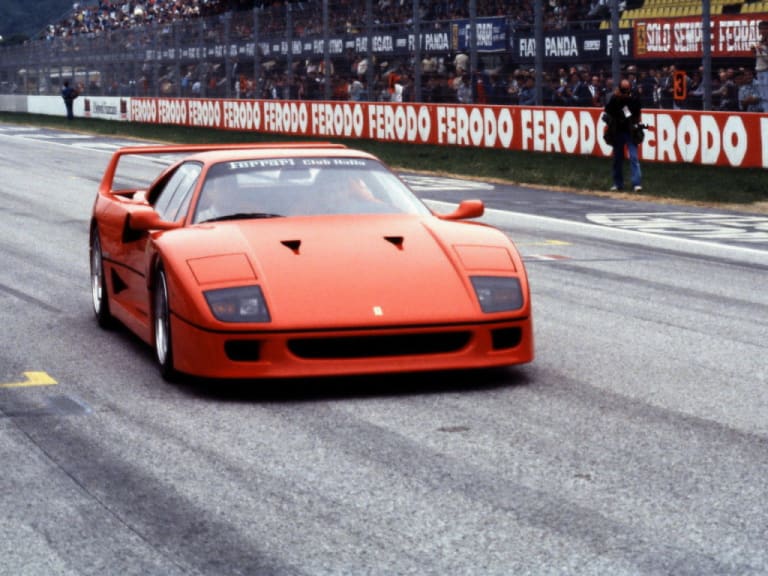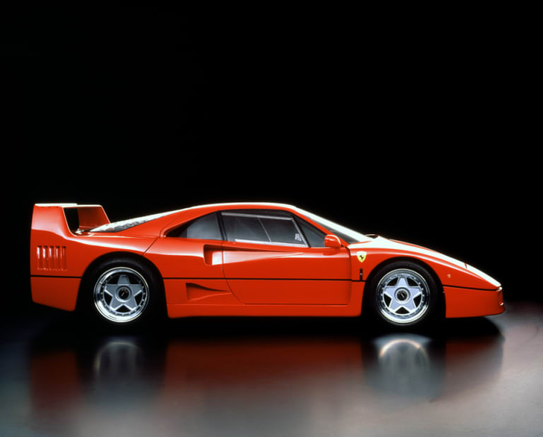 Le décès du Commendatore, survenu durant l’été 1988, a déclenché une folie spéculative qui ne prit fin qu’à la faveur de la récession ayant coïncidé avec la guerre du Golfe et, plus encore que les autres voitures de Maranello, la F40 se trouva à l’épicentre du phénomène. À titre d’exemple, Nigel Mansell, qui pilotait en 1989 et 1990 pour la Scuderia, avait obtenu la sienne pour 150 000 livres sterling ; l’auto fut revendue pour plus de quatre fois ce prix peu de temps après… L’agglomérat des événements et des sources de fascination — l’anniversaire de l’usine, la mort du fondateur, la vélocité ultime en son temps, les matériaux exotiques, le vertige des données chiffrées, la véhémence du style — a inscrit la supercar au cheval cabré en un firmament où elle trône seule, quels qu’aient pu être les progrès de celles qui lui ont succédé.