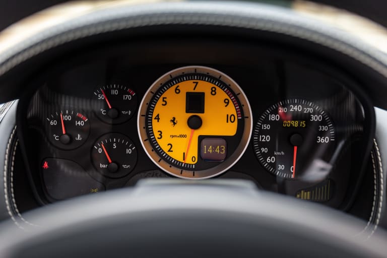 Schématiquement, on peut considérer qu’il existe trois grandes familles parmi les Ferrari de route : les grandes classiques, les modèles de rupture et les voitures de transition – celles qui marquent moins les esprits à leur apparition, puis s’inscrivent moins spontanément dans la mémoire collective une fois leur carrière achevée. La F430 relève sans conteste de cette catégorie ; profonde évolution de la 360 Modena, elle en prolongea brillamment le concept avant que la 458 ne vienne une fois encore rebattre les cartes. Quinze ans après son retrait du catalogue, la voici donc en quelque sorte coincée entre une Modena dont le design fit couler beaucoup d’encre en son temps et une descendance qui ne lui devait à peu près rien à l’exception du moteur. Comment l’aborder aujourd’hui en posant sur l’auto le regard d’un collectionneur averti ?