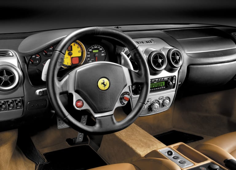 Ce d’autant plus que la F430 parvient à sublimer les qualités de fond de la Modena en acceptant de bonne grâce à peu près tous les styles de conduite. De la sorte, il est tout à fait possible de musarder à basse vitesse, voire même de supporter les embouteillages sans mettre la mécanique en péril, puis de déchaîner le V8 dès que l’horizon se dégage et d’atteindre très vite des allures que la loi réprouve, dans notre beau pays tout du moins… Quant au confort, il n’égale naturellement pas celui d’une Mercedes Classe S, mais six cents kilomètres d’autoroute ne vous mettront pas le dos en compote ni les tympans au supplice ; en somme, l’auto sait se montrer civilisée ou sauvage à la demande. Reste toutefois un aspect qui, de nos jours, divise les amateurs et influe notablement sur la cote de l’engin : je veux parler de la transmission ! Par un savoureux paradoxe, si l’immense majorité des F430 ont été commandées avec la boîte F1, ce sont les voitures équipées de la boîte manuelle (selon les sources, moins de 10 % des quelque 19 000 voitures construites jusqu’en 2009) qui sont les plus convoitées aujourd’hui, certains spécialistes proposant même des kits de conversion destinés aux versions F1 ! Nul doute que les puristes choisiront sans aucun doute la transmission traditionnelle, tandis que les autres feront des économies en profitant du confort – relatif – de la boîte robotisée, le prix plancher pour des berlinettes nanties de celle-ci se situant aux alentours des 100 000 euros à l’heure actuelle. Ce qui, tout bien considéré, n’est pas cher pour une sportive de ce calibre, promise à un bel avenir en collection…
