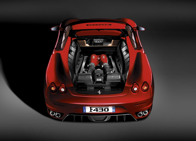 Cinq ans après, la F430 qui nous occupe ici prend, au Mondial de Paris 2004, le relais de la Modena. Une évolution devenue cruciale sous les coups de boutoir d’une concurrence toujours plus acharnée, en particulier depuis que le lancement de la Lamborghini Gallardo l’année précédente. La descente en gamme du rival de toujours contraint Ferrari à réagir, d’autant que la filiale d’Audi n’a pas raté son coup : aboutie, bien construite et bénéficiant d’une maîtrise ingénieriale inédite à Sant’Agata Bolognese, la Gallardo affiche en effet 500 ch à son lancement, c’est-à-dire tout de même 100 de plus que la Modena alors à son couchant… Dans ces conditions, Maranello est plus que jamais attendue au tournant alors que, de leur côté, les plus affûtées des Porsche 911 tutoient désormais sans difficulté les chronos de la 360. Et la réponse du Cavallino Rampante s’avère cinglante. Repartant de la base de la Modena et, en particulier, de sa structure intégralement constituée d’aluminium, les responsables du projet rendent une copie époustouflante de compétence et de passion entremêlées, comme le proclame le style extérieur de la voiture, habilement revu sous la férule de Frank Stephenson.
