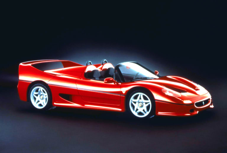 Autre différence avec ses ancêtres, la F50 n’est pas le fruit de choix de circonstances. La 288 devait être une Groupe B, une discipline que Ferrari ne connaissait pas bien, et dont la F40 reprenait la base, adaptée à la piste. La F50, elle, se voulait issue du meilleur de Ferrari, sa discipline de prédilection : la Formule 1. Elle espérait d’ailleurs permettre à ses clients de tutoyer l’expérience d’une F1, mais sur route, d’où le choix d’une carrosserie découverte (même si un toit hard top permettait d’en avoir une utilisation un peu plus polyvalente).