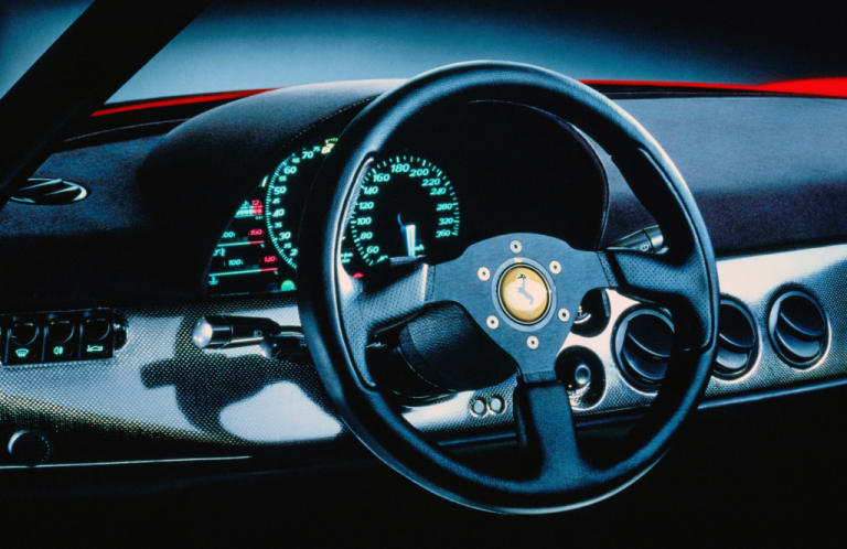 Ce n’est pourtant pas une Formule 1 qui servira de base de travail aux équipes de Maranello, trop compliquée à adapter à un usage routier, mais la barquette 333 SP qui courait en IMSA en 1994. Cela assurait au projet F130 les gènes de la course, du circuit et de la compétition en règle générale. Comme en F1, le design n’était pas le fruit du hasard, mais d’un travail en soufflerie pour la meilleure aérodynamique et la meilleure efficacité possibles. Le dessin était signé Lorenzo Ramaciotti pour le compte de Pininfarina, et tranchait franchement avec la production Ferrari de l’époque, à laquelle il ne se rattachait pas. Mais à voiture extrême, design extrême !