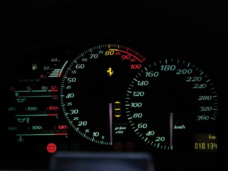 La F50 disposait d’une carrosserie monocoque en matériaux composites (kevlar et carbone), à la manière des monoplaces reines, tandis que le moteur était lui aussi porteur. Légèreté, équilibre, tenue de route et puissance, tels étaient les maîtres mots de la F50. Et force est de constater qu’à défaut d’être beau, le résultat est époustouflant ! Avec 325 km/h en vitesse de pointe, et un 0 à 100 en moins de 4s (3,8 pour être précis), la F50 offrait des performances de tout premier plan. Et c’était bien le but de la manœuvre : affronter la concurrence sur le domaine des performances et de la technologie, notamment McLaren et sa F1 (lire aussi : McLaren F1), ou Bugatti et son EB110 (lire aussi : Bugatti EB110). En revanche, étrangement, la F50 disposait d’une transmission classique, manuelle à 6 vitesses, avec la fameuse grille Ferrari.