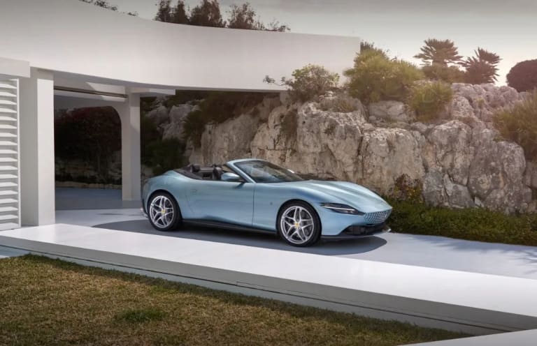 Dévoilée à l’automne 2019, la Roma se présente initialement sous la forme d’un coupé dont le design diverge résolument des choix retenus pour la Portofino, qui lui a légué son V8 biturbo développant ici 620 ch. Aux formes rondouillardes et aux courbes sensuelles d’icelle, la nouvelle venue préfère un style plus acéré que de mauvaises langues n’hésiteront pas à comparer à celui des Aston Martin contemporaines. Avec son long capot et son habitacle rejeté vers l’arrière, dans la grande tradition des GT de haute volée, la Roma exsude une finesse bienvenue, saupoudrée d’une agressivité tout en retenue, avec une proue de type sharknose très éloignée des us de la maison (il y a cinq ans, si l’on supprimait les logos, il était difficile d’identifier spontanément la Roma comme une Ferrari). L’auto participe aussi d’un certain renouvellement des thèmes chers à la marque, en osant par exemple une calandre ton caisse – assez controversée, il faut en convenir – et en renouvelant le tracé des coutumiers quatre feux arrière, ici réduits à de simples fentes lumineuses. Indéniablement, l’ensemble a gagné en distinction et en pureté, retrouvant une heureuse simplicité formelle.