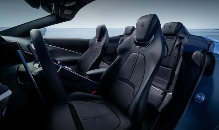 Il en va de même à l’intérieur, qui semble s’inspirer des solutions retenues par McLaren en scindant très nettement le cockpit en deux, la console centrale suspendue accueillant un écran vertical de taille contenue, loin des dalles vulgaires et envahissantes qu’affectionnent dorénavant la plupart des constructeurs généralistes. Ici, l’on peut admirer un design véritable, élaboré avec soin – un environnement à la fois sportif et confortable dans lequel chacun trouve immédiatement ses marques. À condition toutefois de s’installer à l’avant ; les places arrière ne sont ici que des alibis et serviront plus volontiers d’extension pour le coffre à bagages, pourtant déjà généreux pour la catégorie avec ses 345 litres. Déclinée en spider à capote souple à partir de 2023, la Roma n’a semble-t-il pas joui de la même popularité que les California et Portofino, ayant perdu l’avantage du concept « deux voitures en une ». Cela n’empêche pas cette Ferrari atypique de tenir amplement son rang, son huit-cylindres témoignant du même brio que lorsqu’il anime des modèles plus sportifs tels que les F8 ou SF90. En toute objectivité, aujourd’hui encore il demeure difficile de trouver mieux pour voyager à deux !