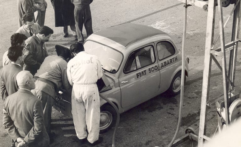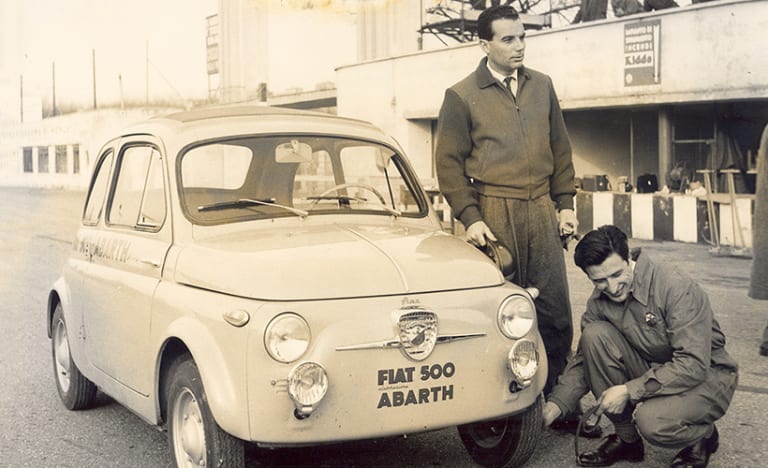C’est ainsi qu’intervient Carlo Abarth. Soutenu par Fiat (la 500 économique fut directement prélevée sur les chaînes de production), il prépare à sa sauce la petite voiture pour en faire une bête de concours : si la cylindrée du moteur reste identique (478 cc), Abarth re-travaille tout l’environnement pour doubler la puissance à 26 chevaux. La voiture est aussi allégée de ses sièges (sauf celui du conducteur) et de ses pare-chocs.