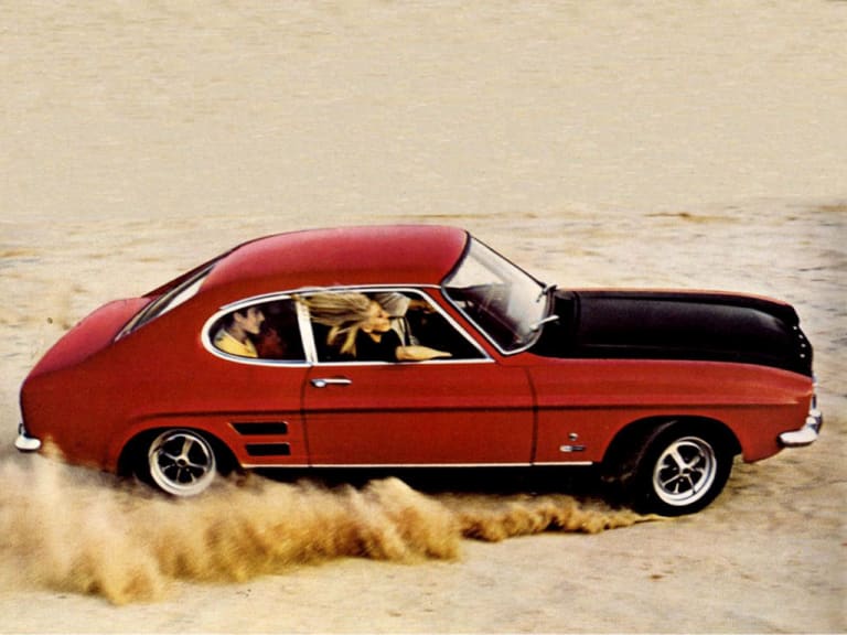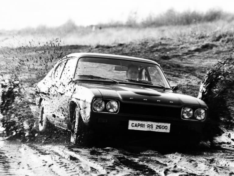 À l’époque où Ford était un véritable monstre du sport automobile et où sa mythique Mustang chamboulait la donne automobile, un coupé à l’américaine et aux proportions européennes devenait indispensable sur les marchés du Vieux Continent. Ainsi naquit la Ford Capri en 1969, avant de muter peu après en bête de course dans sa version RS 2600.