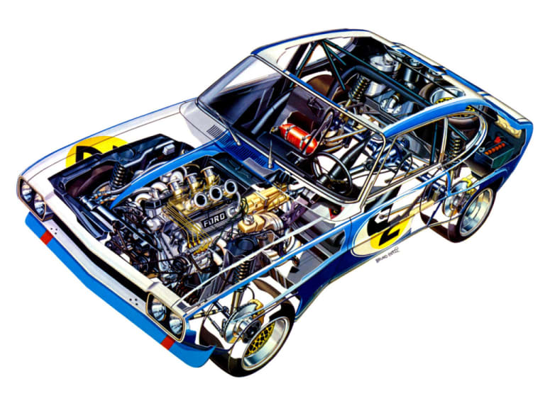 Afin de procurer une aura plus sportive à la Ford Capri, la palette de motorisations est revue à la hausse. Ainsi, un V6 de 2 300 cm3 apparaît au sein de la gamme fabriquée en Allemagne, tandis que les modèles construits au Royaume-Uni peuvent être équipés d’un V6 Essex de 3 000 cm3 développant 138 chevaux. La Mustang s’étant fréquemment illustrée en compétition, la Capri ne peut s’y soustraire. Ainsi, le directeur de la compétition de Ford, Jochen Neerpasch, lance la conception d’une variante destinée à courir en groupe 2. Le fruit de ce travail apparaît en mars 1970 sous la forme de la Capri RS 2600. La cylindrée est de 2 637 cm3 pour développer 150 chevaux. Rabaissée, elle est également équipée d’une carrosserie allégée lui permettant de réduire son poids à 900 kg.