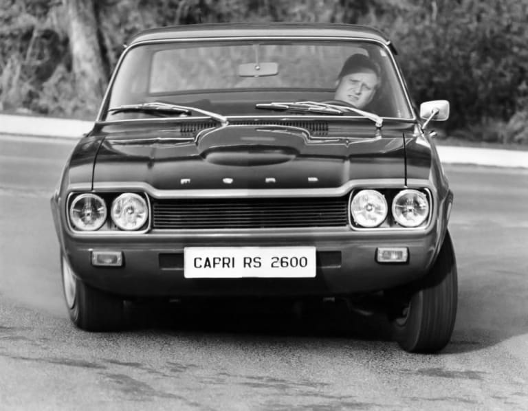 La RS 2600 est d’abord fabriquée en petite série, destinée à une clientèle de coureurs afin de pouvoir être homologuée en rallye. Elle préfigure toutefois un modèle de plus grande diffusion qui apparaît en septembre 1971. Les parties allégées de la carrosserie ont laissé place à des éléments en tôle tandis que les vitres en plexiglas ont été remplacées par des modèles en verre. Le poids atteint donc 1080 kg mais les performances restent honorables avec plus de 200 km/h en vitesse de pointe, notamment grâce à un système d’injection mécanique de type Kugelfischer. Côté accélérations, la Capri RS 2600 fait mieux qu’une Porsche 911S alors qu’elle ne coûte même pas la moitié de son prix d’achat. Extérieurement, elle se distingue par ses quatre optiques avant de forme circulaire, ses pare-chocs avant et arrière en deux parties et ses jantes Richard Grant à bâtons. L’habitacle se montre cossu, tout de noir vêtu et se pourvoit de deux sièges baquet.