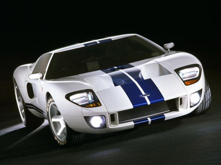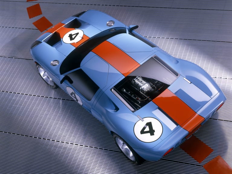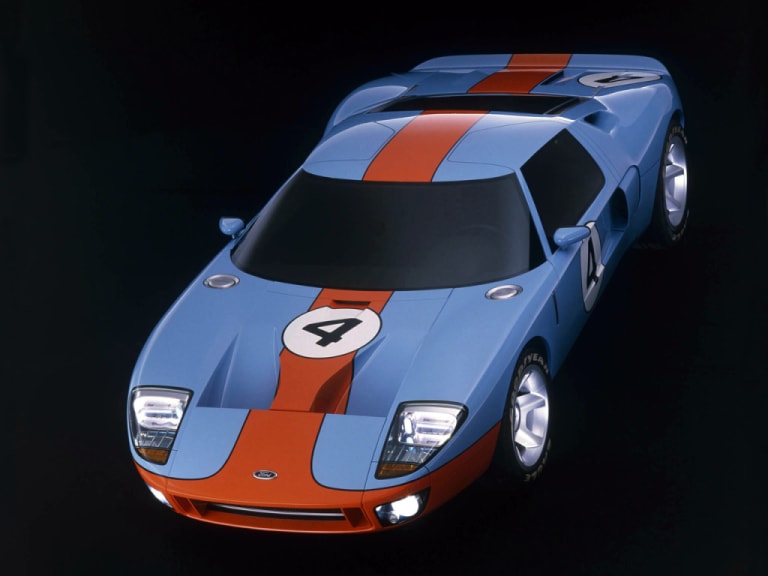 L’aventure commence dans les années 90. Chez Ford, faire revivre le mythe de la GT40 commençait à titiller certains. Depuis la fin de production du modèle, Ford n’avait plus jamais mis un pieds dans le monde des supercars et pour certains, c’était vraiment dommage. Ford était l’un des rares constructeurs généralistes à avoir oser défier les spécialistes de la voiture ultra sportive, et disposait d’une certaine légitimité pour y revenir. Quand on a créé un mythe, on obtient à vie le droit de retenter l’aventure. Les équipes du design planchèrent alors sur une nouvelle version présentée comme concept-car en 1995 et dénommée GT90 (90 pour la décennie, pas pour les pouces hein!). Avec la GT90, Ford revisite le mythe même n’est pas encore dans le revival. Au contraire, ce concept recevait des lignes très New Edge design alors en vogue chez Ford, mélange de courbes et de lignes acérées. Ce premier pas vers le renouveau de la GT40 allait mener, 7 ans plus tard, à la renaissance tant attendue.