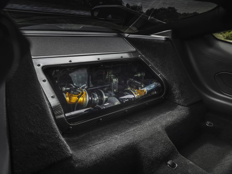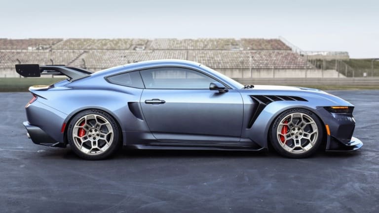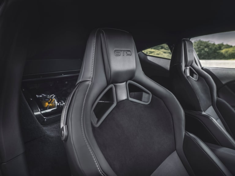 Les chiffres, d’abord. Le V8 5,2 litres Predator, suralimenté par compresseur, développe, en toute simplicité, 815 chevaux à 7400 tours/minute ; le couple atteint quant à lui la valeur faramineuse de 900 Nm à 4800 tours. Mais ce n’est pas tout. L’auto se distingue à plusieurs égards des Mustang « normales », à commencer par sa transmission. Ici, la boîte de vitesses à double embrayage (qui ne compte plus que huit rapports, versus dix sur ses sœurs de gamme) est implantée à l’arrière, pour le plus grand bénéfice de la répartition des masses, désormais proche de l’idéal. Étudiées par Multimatic, les suspensions innovent également – en particulier à l’arrière, où l’on trouve un sous-châssis spécifique en alu portant le train arrière multibras. L’ensemble engendre la suppression des places arrière et du coffre, mais la capacité d’emport ne constitue sans doute pas la préoccupation majeure des clients potentiels de l’objet, presque aussi rapide qu’une Porsche 992 GT3 RS sur la Nordschleife. Disponible au compte-gouttes en Europe, la Mustang GTD exige la bagatelle de 445 000 euros sur le marché français , malus compris. Plus tout à fait une sportive « populaire », donc, mais avec des chronos pareils, qui s’en plaindra ?
