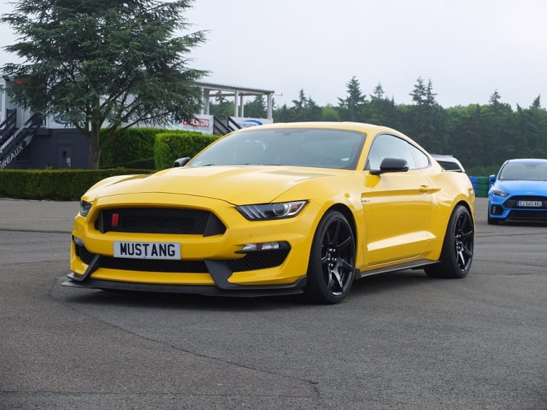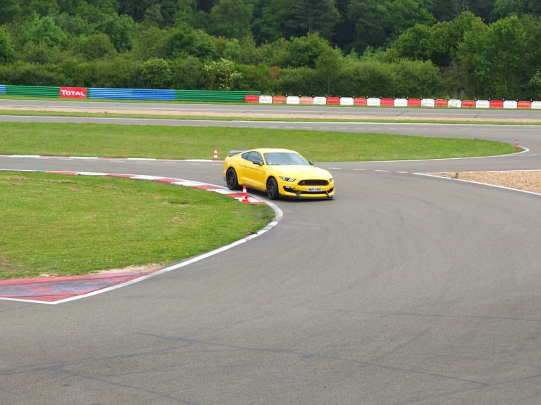 Le monstre « jaune » essayé par BR à Dreux ! Même si Dreux n’est pas le type de circuit rêvé pour exploiter le potentiel d’une bête sauvage comme celle-là, il nous aura permis de tester la dextérité de la Focus RS qui s’accommode très bien de ces petits tracés. Mais revenons à notre Shelby, si la piste n’offre pas assez de longueur en ligne droite pour que le V8 5.2L de 526ch puisse s’exprimer complètement, il nous aura fait vibrer à répétition par sa sonorité si enivrante. Au moins sur un circuit de 2.1km on profite pleinement de toutes les accélérations pour se gaver du « ronron glouglouteur » de ce V8 américain, le plus puissant de la marque.