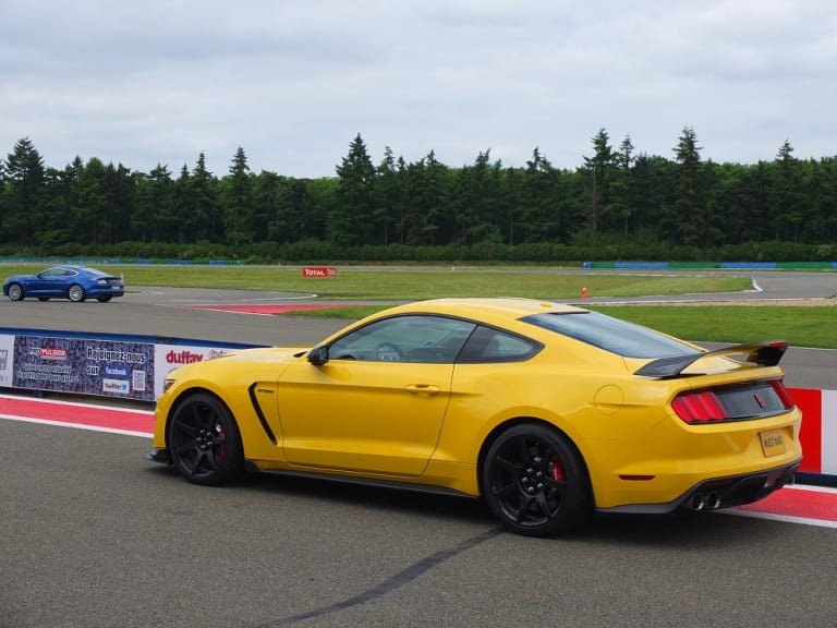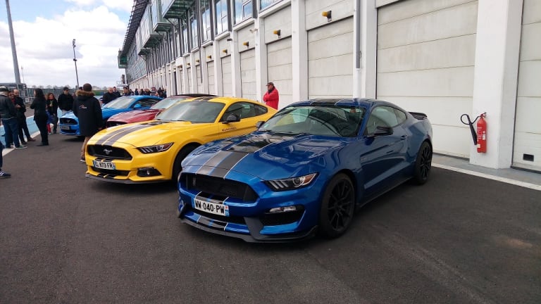Même si Dreux n’est pas le type de circuit rêvé pour exploiter le potentiel d’une bête sauvage comme celle-là, il nous aura permis de tester la dextérité de la Focus RS qui s’accommode très bien de ces petits tracés. Mais revenons à notre Shelby, si la piste n’offre pas assez de longueur en ligne droite pour que le V8 5.2L de 526ch puisse s’exprimer complètement, il nous aura fait vibrer à répétition par sa sonorité si enivrante. Au moins sur un circuit de 2.1km on profite pleinement de toutes les accélérations pour se gaver du « ronron glouglouteur » de ce V8 américain, le plus puissant de la marque.