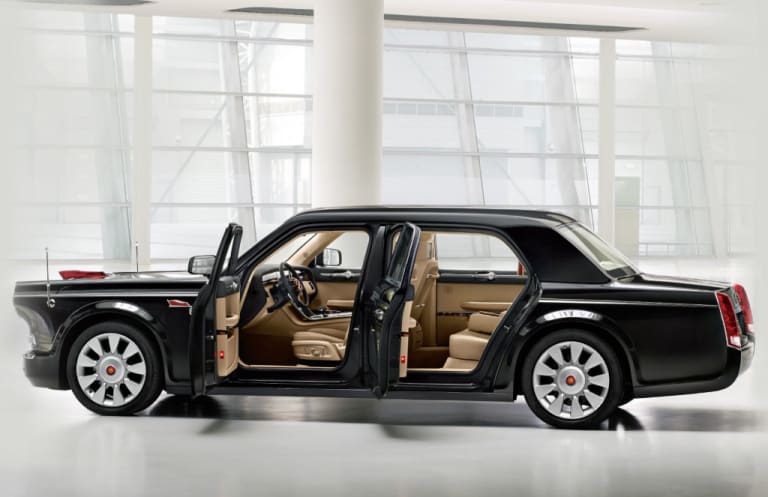 Ce n’est qu’en 2014, à l’occasion du récent salon de Pékin, que la version de série (entendez : « livrable aux particuliers ») a été présentée, affichant un tarif délirant (pour le commun des mortels) de 570 000 euros. Et pourtant, le premier exemplaire a déjà été livré à un millionnaire chinois et sans doute très patriotique.