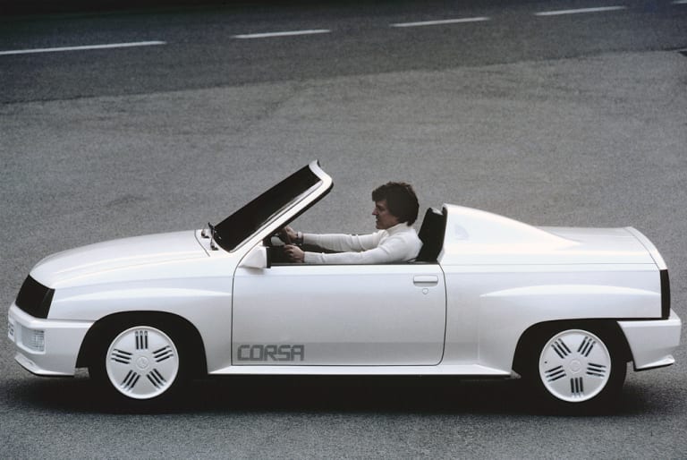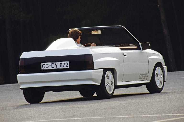 En 1982, Opel lançait sa petite Corsa, et pour la rendre encore plus sexy, présentait au Salon de Genève son Spider Concept : une version radicale et découvrable de la nouvelle Corsa A, censée séduire les jeunes générations. Il ne s’agissait à l’origine que d’un show-car, mais le produit était plutôt réussi, avait trouvé un certain écho sur le salon genevois, et cela avait donné des idées aux dirigeants de la marque au Blitz.