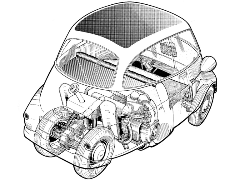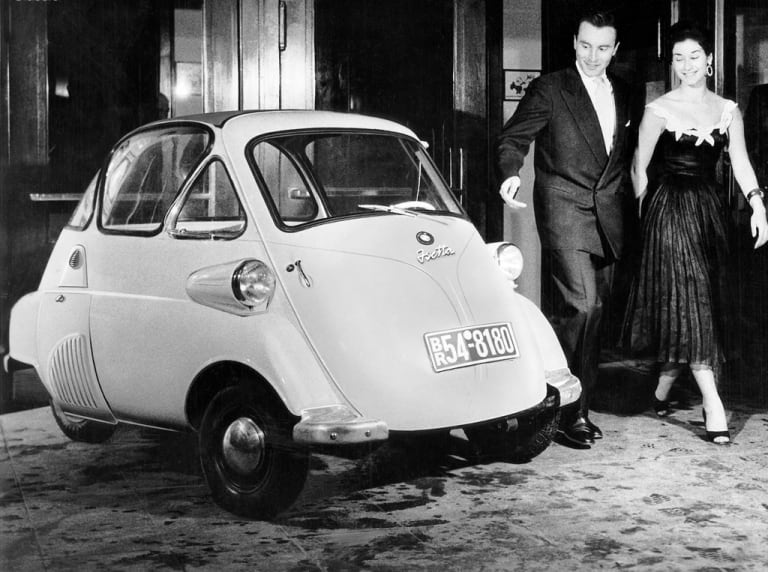 En 1954, l’importateur BMW pour la Suisse repère cet étrange véhicule et propose le projet à BMW qui, justement, cherche à faire du volume en bas de gamme : les années 50 sont des années difficiles pour la marque bavaroise qui n’a pas encore l’aura d’aujourd’hui et qui s’est trouvée spoliée par la division de l’Allemagne en deux ! La toute récente République Fédérale d’Allemagne, créée en 1949, n’est pas non plus la super-puissance économique que l’on connaît aujourd’hui et sort tout juste du chaos et de la famine en ce début de décennie. Si Mercedes ou la récente officine de voitures de sport Porsche arrivent à tirer leur épingle du jeu, notamment grâce aux marchés extérieurs (et en particulier les États-Unis grâce à Max Hoffman), Borgward est à la peine, tout comme BMW. Volkswagen, relancée grâce au Major Hirst, commence à vendre en masse sa Käfer (Coccinelle chez nous), mais il reste une frange intermédiaire de clients à satisfaire : ceux qui ne peuvent s’offrir une “vraie” voiture, et ils sont nombreux.