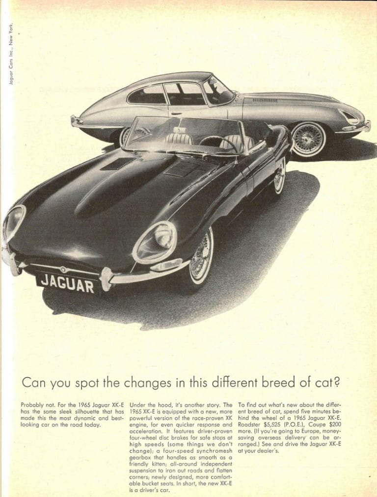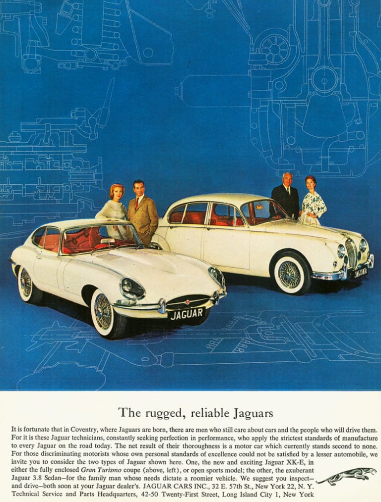 La Type E est donc belle, au point de séduire tous les grands de ce monde, et pas seulement Austin Powers. En France, Françoise Sagan, Johnny Halliday ou Charles Trenet n’hésitent pas à sortir le portefeuille pour s’offrir la belle anglaise, tout comme Roy Orbinson ou Charlton Heston à l’international. Une Type E, c’est l’assurance d’une certaine classe, d’une prestance et d’un luxe “à l’anglaise”, très éloignés de ce que proposent les italiennes (Ferrari ou Maserati) en tête, ou les allemandes (Porsche).