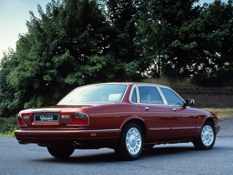 Une Daimler Double Six à moteur V12 (X305) Voilà pour la première salve de la nouvelle XJ « made by Ford ». Le pognon a été mis (200 millions de £), la tradition est respectée, le progrès est de mise, et cela ne sent pas encore trop la banque d’organe américaine (contrairement à la X-Type quelques années plus tard qui souffrira de son origine un peu trop « Mondeo, lire aussi : Jaguar X-Type). Cette première génération « X300/X305/X306 » sera produite jusqu’en 1997 à 92 038 exemplaires (dont 4165 X305 et 6547 X306). Tous moteurs confondus (donc parfois avec V12), les X330 représentent 17 368 exemplaires. Un unique modèle Daimler cabriolet, appelé Corsica, sera présenté en 1996 pour le centenaire de la marque (lire aussi : Daimler Corsica).