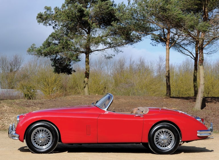 Treize années durant, de 1948 à 1961, la lignée des XK aura incarné le grand tourisme chez Jaguar. S’adressant à une clientèle de gentlemen drivers séduits tout autant par la magnificence du style que par la noblesse d’un six-cylindres aujourd’hui légendaire, ces autos auront durablement installé la jeune marque parmi les bons faiseurs, rivalisant sans peine avec Aston Martin, Ferrari ou Mercedes-Benz. Pourtant, à partir de la moitié des années 1950, le concept montra des signes évidents de senescence, ce qui n’empêcha pas Sir William Lyons de faire patienter les jaguaristes patentés quelques années de plus, le temps d’achever la mise au point de la future Type E. Modernisée à la marge et habilement restylée, c’est à la XK 150 qu’échut cette délicate mission…