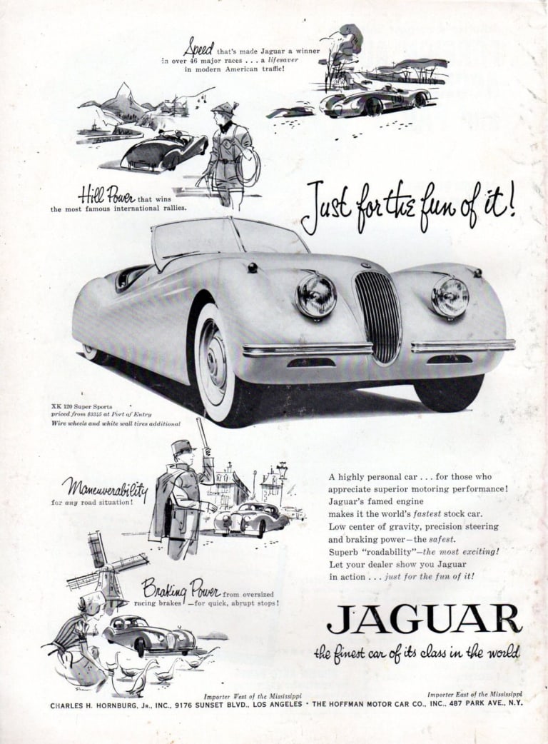 Présentée à Earl’s Court en octobre aux côtés de la Mark V, elle devint rapidement l’attraction du stand Jaguar. Il faut dire que, la chance souriant aux audacieux, Lyons avait vu juste avec cette ligne racée et sportive pourtant dessinée à l’instinct : un coup de crayon osé alors que le design de l’époque restait très conservateur, mais un coup payant. Devant un tel succès, Lyons sentit qu’un coup pouvait être joué en lançant une petite série de cette XK120 si désirable.