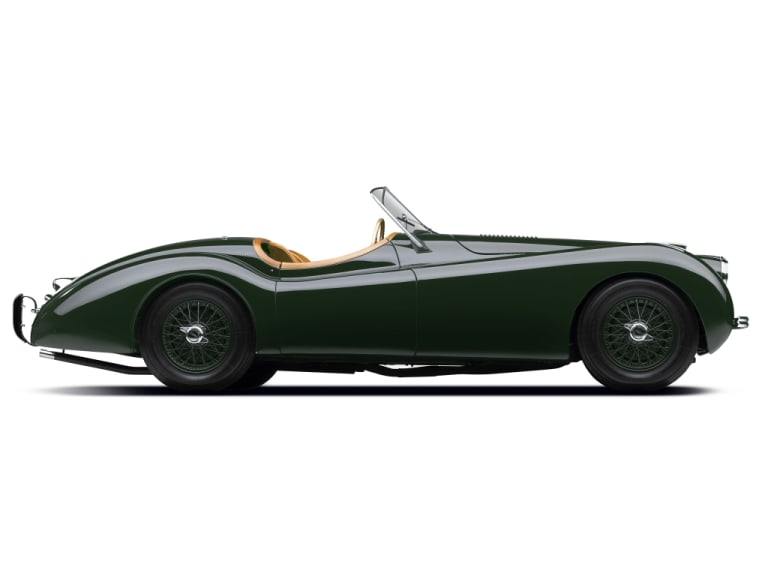 Rapidement, il fut évident que la Mark VII, inaugurant ce bijou de technologie, ne serait pas prête à temps, contrairement à la Mark V dont la présentation à la presse était déjà prévue pour septembre 1948. Hors de question pour Lyons de ne pas présenter ce tout nouveau moteur : il fallait faire autrement. On décida donc de produire un show-car un peu sportif histoire d’offrir un écrin à la hauteur du XK. En quelques semaines (la légende parle de 2 seulement), Lyons et ses ingénieurs pondirent la XK120 (XK pour son moteur, 120 pour la vitesse en miles qu’elle pouvait atteindre, soit un peu plus de 190 km/h tout de même), un roadster doté d’une carrosserie en aluminium en ces époques de restrictions d’acier.